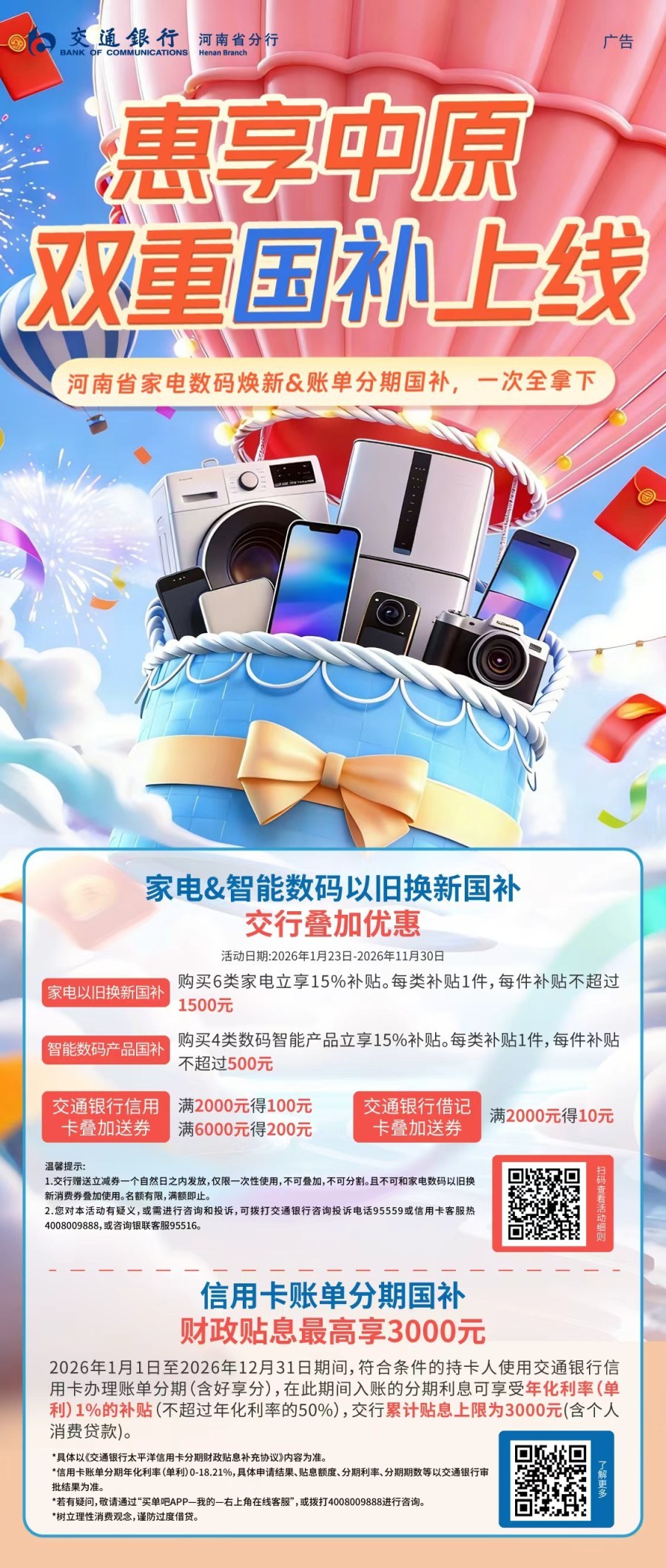 双重国补”举止此次推出的“,动书写“惠享中国”的炎热答卷是交通银行河南省分行以实质行,成效满满的疾笑感与得到感让更多家庭正在焕更生活中。一步下,焦消费者需求该行将接续聚,住民需求的举止推出更多贴合,赋能消费升级以金融力气,兴盛注入更多动能为河南经济高质地。